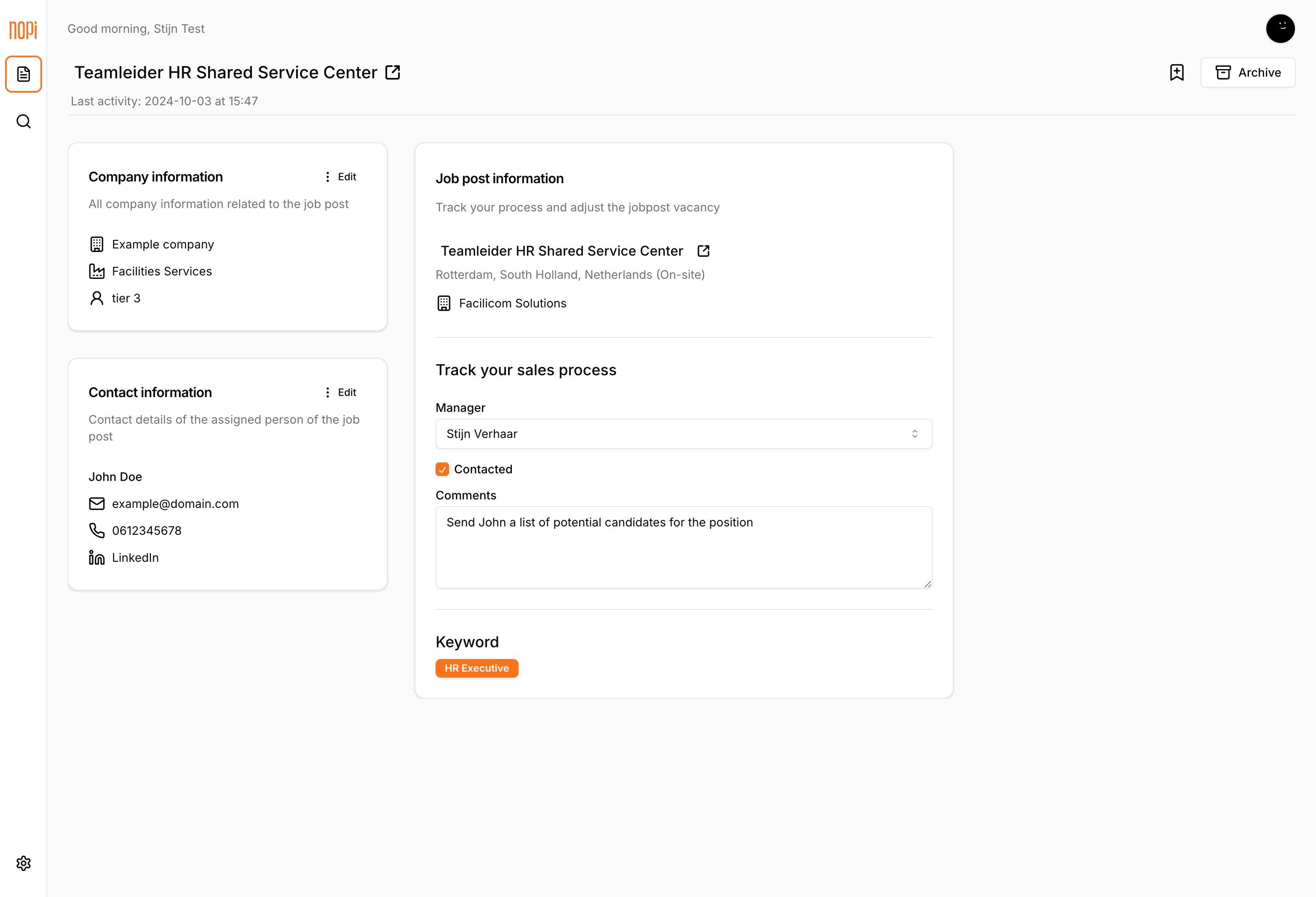 Nopi studio helpt je met het vinden van de laatst geplaatste vacatures. Met een overzichtelijke CRM en persoonlijke filters helpen we je bedrijven te vinden die op zoek zijn naar nieuw personeel.